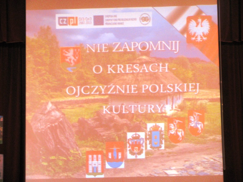Wykład autorski pana Stanisława Srokowskiego pt. „Wielkość i dramat polskich Kresów”, polskiego pisarza, poety, prozaika, uratowanego \jako dziecko\ z rzezi we wsi Hnilcze - wysłuchano w wielkiej ciszy i skupieniu. Autor w swoim wykładzie nawiązał do mapy Kresów i struktury ludności. Zwracał uwagę na wieloetniczność Kresów, która dotyczyła nie tylko Polaków, ale również Czechów, Rusinów, Żydów, Białorusinów… Czesi bowiem odegrali poważną rolę w polskiej rzeczywistości. Mówił o wielkości kulturowej w oparciu o literaturę i sztukę, naukę oraz o ideach. Dużo uwagi poświęcił początkom dramatu, nawiązując do dzieła Doncowa, powstania UON i UPA, ludobójstwie na Kresach. Nie zabrakło relacji nt. aktualnej sytuacji Kresowian w Polsce. O tym, co się dzieje obecnie na Ukrainie.