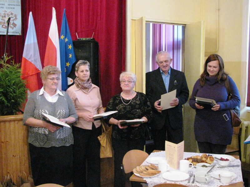 W Gimnazjum Publicznym im. Wł. St. Reymonta wszystkich gości z Polski i Czech powitała wicedyrektor pani Ewa Szczepaniak. Swoją obecnością spotkanie zaszczycili m.in. przewodniczący Rady Gminy Kłodzko pan Zbigniew Tur, prezes Zarządu Powiatowego PSL i radny powiatowy pan Ryszard Niebieszczański, mjr Krzysztof Puchała z WKU Kłodzko, przedstawiciele organizacji Kresowych z Kłodzka, Kędzierzyna Koźle i Dzierżoniowa, ks. proboszcz Adam Łyczkowski z Krosnowic i ks. Boleslaw Stanisławiszyn z Żelazna, przewodniczący Stowarzyszenia Rozwoju Regionalnego i Współpracy Czesko-Polskiej pan Vladimir Hulman oraz starostka czeskiego obec Libel pani Božena Šedová z liczną delegacją obywateli czeskich.