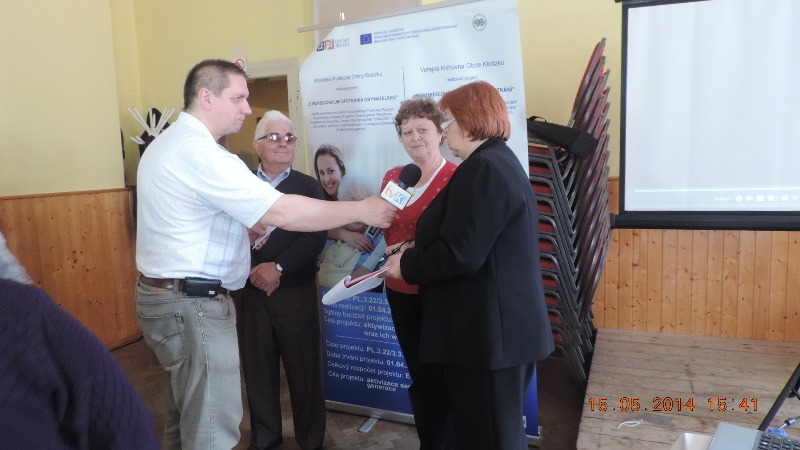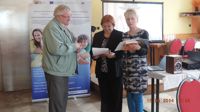 Działania zawarte w projekcie „Euroregionalne Spotkania Obywatelskie” mają przeciwdziałać wykluczeniu społecznemu, stymulować aktywność ludzi starszych w środowisku lokalnym oraz budować i rozwijać relacje z młodym pokoleniem – wspólnie i razem przez Polaków i Czechów. Mają ocalić od zapomnienia rodzinne historie seniorów, ich własną twórczość i aktywność. Jest to zgodnie z harmonogramem projektu, utrwalane przez Bibliotekę Publiczną Gminy Kłodzko w różnych formach. Dotychczas został wydany tomik wierszy „Moja babcia – mój dziadek pisze wiersze”. W trakcie realizacji jest książka autorstwa pana Michała Kutnego pt.„Wspomnienia ze łzami prozą i wierszami” oraz zakładki do książek pod hasłem „moi dziadkowie i ja”. W miesiącu czerwcu będzie jeszcze ogłoszony konkurs literacko-plastyczny na plakat promujący czytelnictwo po obu stronach granicy. Ahoj! RELACJĘ TELEWIZJI KŁODZKIEJ Z TEGO DZIAŁANIA OBEJRZYSZ POD ADRESEM http://www.tvklodzka.pl/site/telewizja/1/1/1/1412/n.html