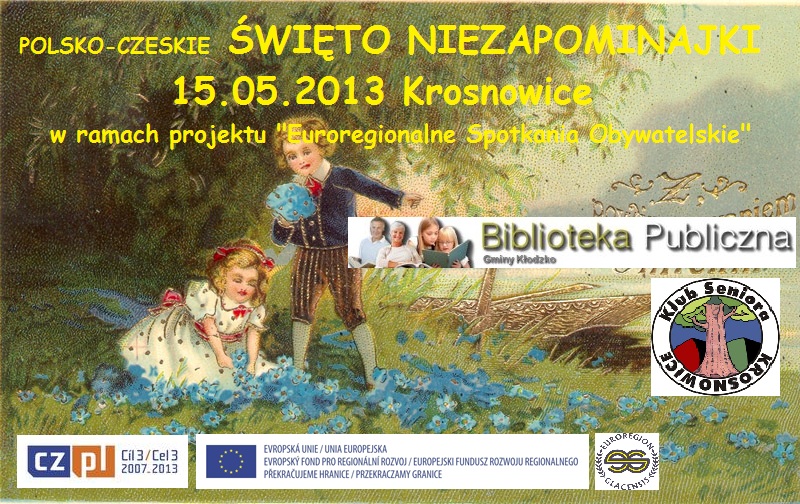 projekt „EUROREGIONALNE SPOTKANIA OBYWATELSKIE” współfinansowany ze środków Europejskiego Funduszu Rozwoju Regionalnego w ramach Programu Operacyjnego Współpracy Transgranicznej Republika Czeska- Rzeczpospolita Polska 2007 -2013 oraz budżetu państwa za pośrednictwem Euroregionu Glacensis „Przekraczamy granice”