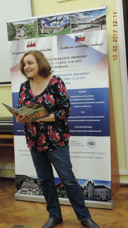Spotkanie autorskie realizowane było w ramach mikroprojektu Biblioteki Publicznej Gminy Kłodzko „Przystanki kultury z książką”, który jest współfinansowany ze środków Europejskiego Funduszu Rozwoju Regionalnego oraz budżetu państwa za pośrednictwem Euroregionu Glacensis