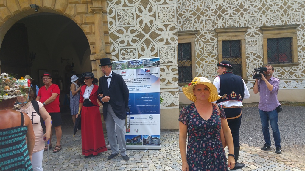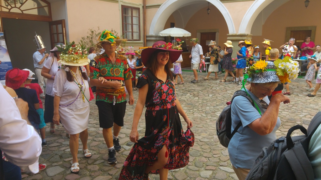 Na zamku w Doudleby nad Orliciί przywitali nas pan Vladimir Hulman, przewodniczący Stowarzyszenia Rozwoju Regionalnego i Współpracy Czesko-Polskiej w Rychnov nad Kneźnou oraz właściciel zamku, który pochodzi ze starego rodu szlacheckiego. Tam też, odbyło się widowiskowe otwarcie wędrówki od zamku do zamku, której po raz czwarty towarzyszyła parada kapeluszy. Pomysłowość ludzka w tym zakresie nie zna granic… - My, też mieliśmy nakrycia głowy, ale nasi sąsiedzi z Czech, to dopiero pokazali dystans do siebie. Na głowach mieli sprzęty, zabawki, opakowania, środowisko naturalne, tradycje świąteczne, można wymieniać i nie będzie końca…